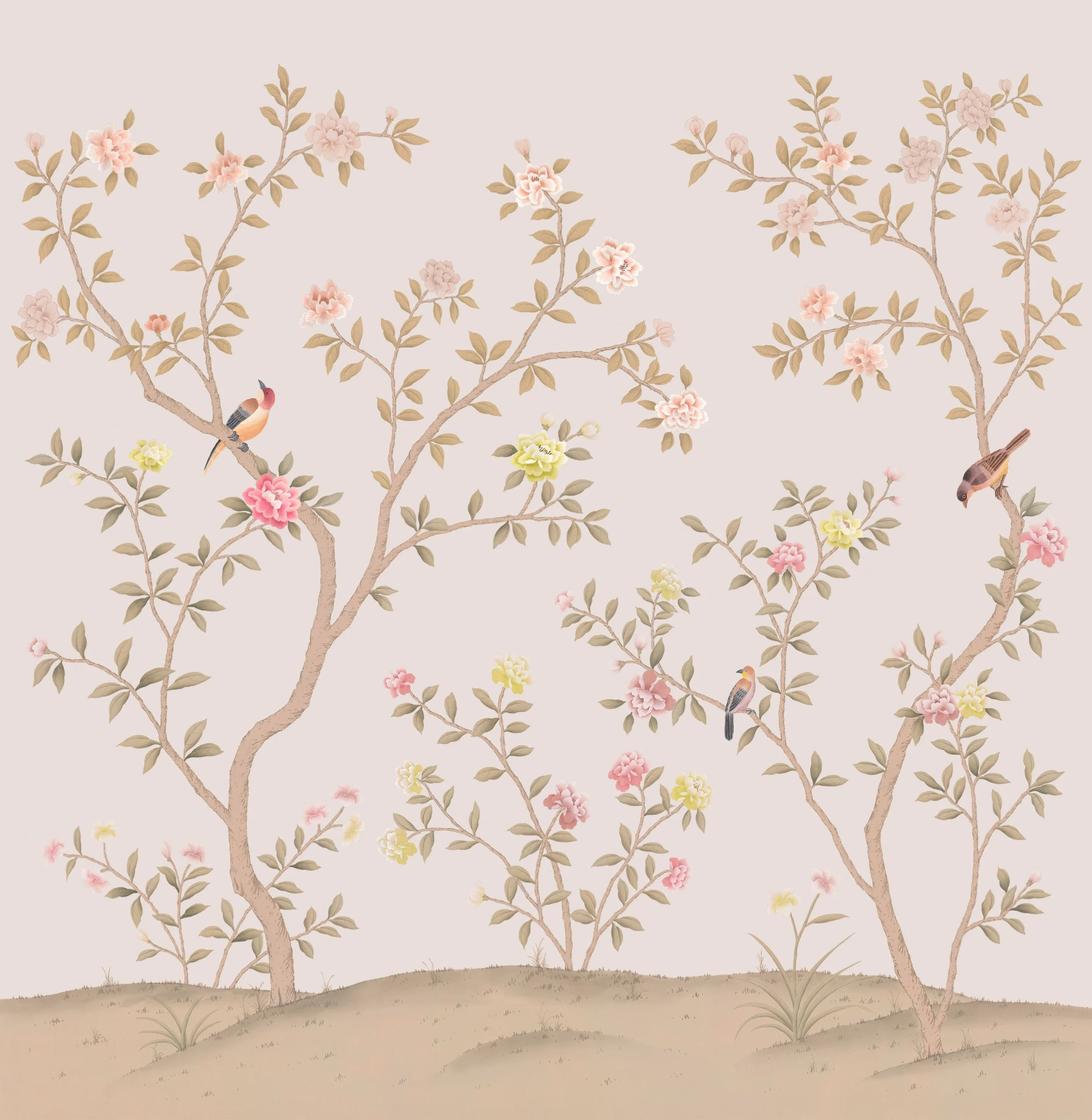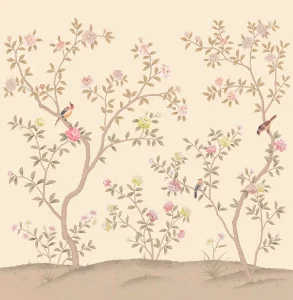 The Chinoiserie wallcoverings collection features images of birds, plants, and animals, creating an atmosphere of Eastern elegance and refinement. This style uses delicate patterns and motifs inspired by traditional Chinese art. The color palette often includes rich and vibrant tones that highlight the sophistication of the design. The collection is perfect for those who want to bring a touch of Eastern culture and natural beauty into their interior.