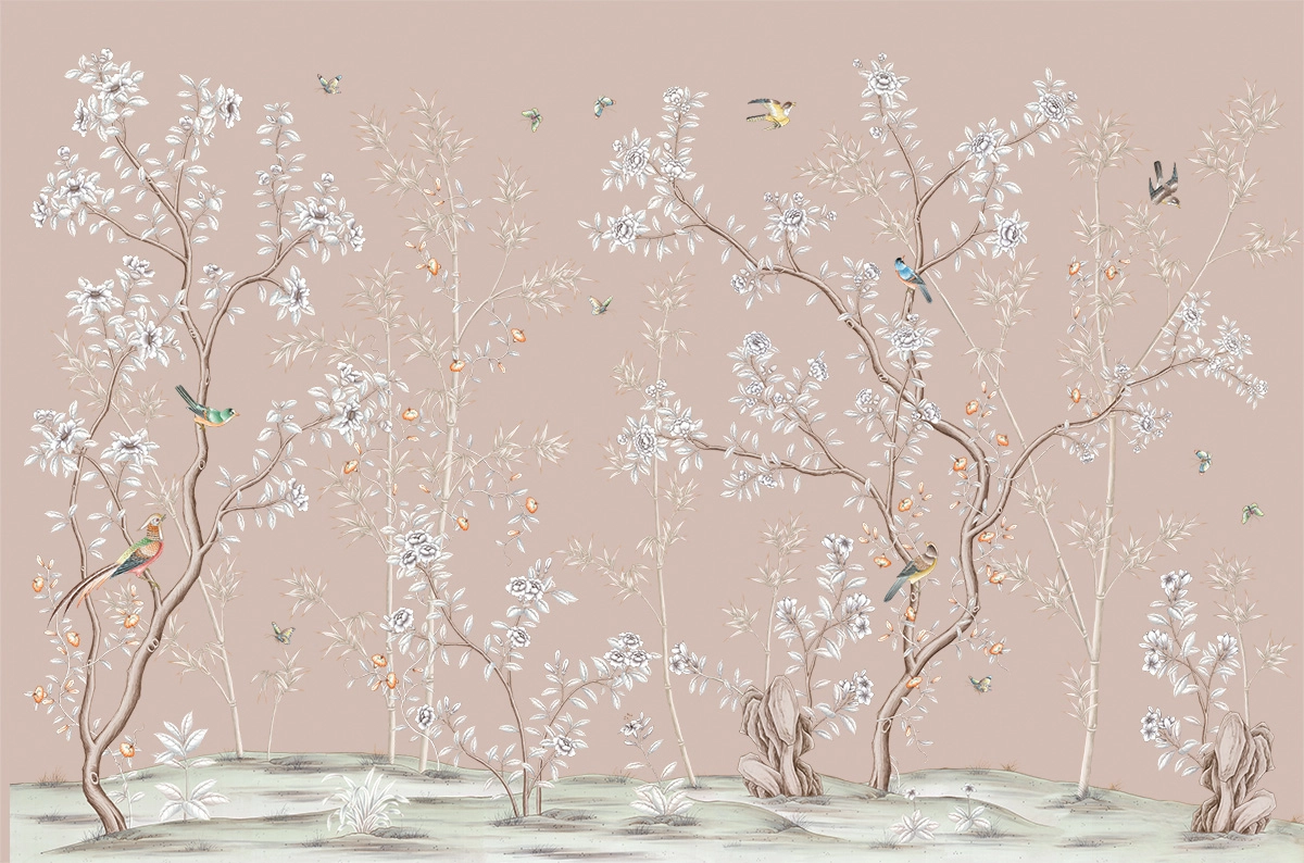 The Chinoiserie wallcoverings collection features images of birds, plants, and animals, creating an atmosphere of Eastern elegance and refinement. This style uses delicate patterns and motifs inspired by traditional Chinese art. The color palette often includes rich and vibrant tones that highlight the sophistication of the design. The collection is perfect for those who want to bring a touch of Eastern culture and natural beauty into their interior.