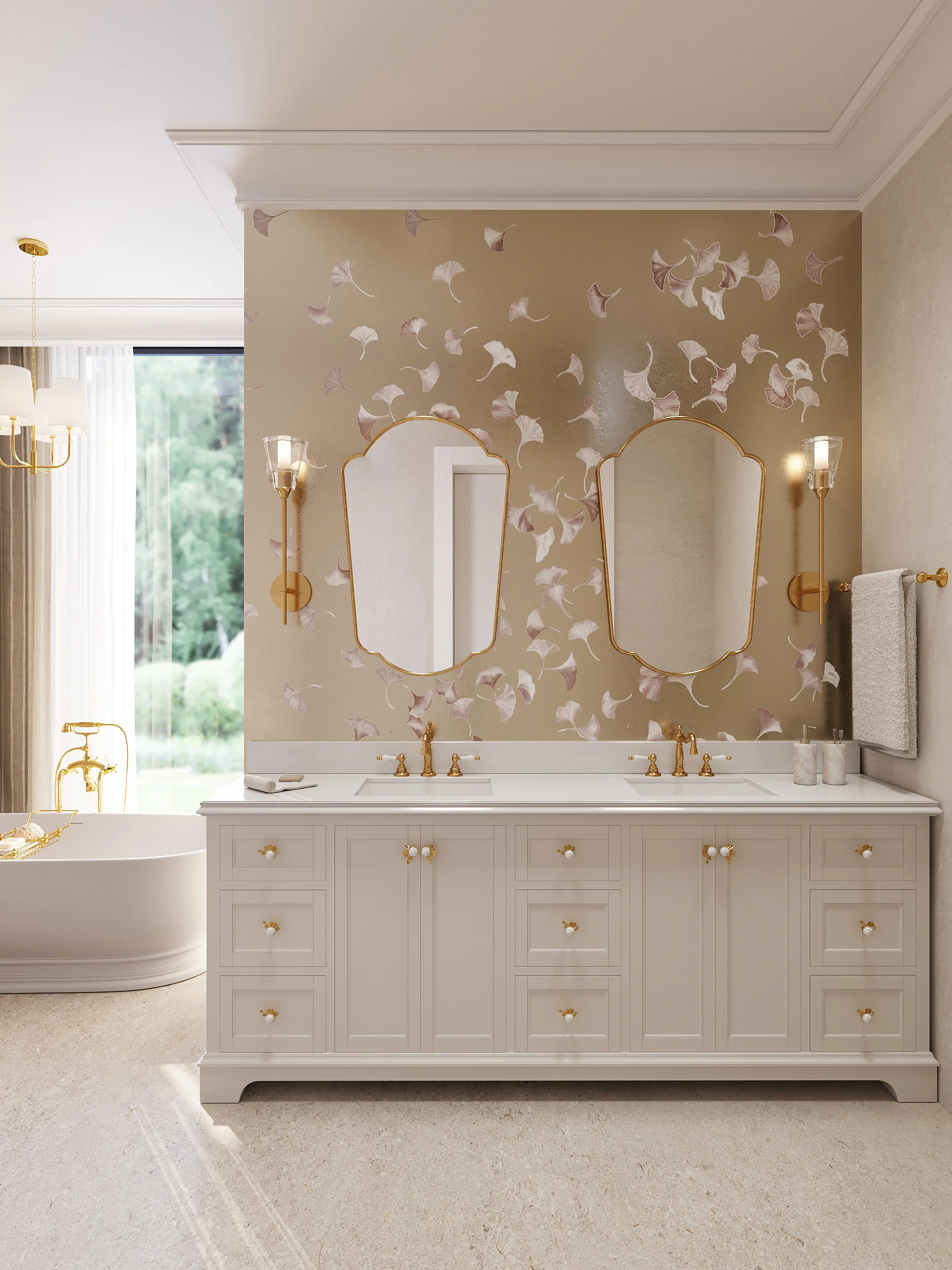 Collection of art print designs on silk or gold leaf wallcoverings.