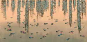 Collection of art print designs on silk or gold leaf wallcoverings.