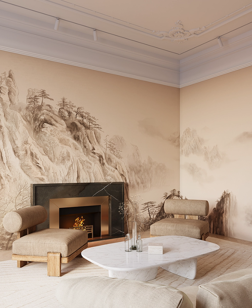The Landscapes wallcoverings collection features picturesque natural scenery, creating a sense of harmony and tranquility in the interior. This collection showcases various types of nature — mountains, forests, fields, and water bodies — adding depth and dimension to the space.