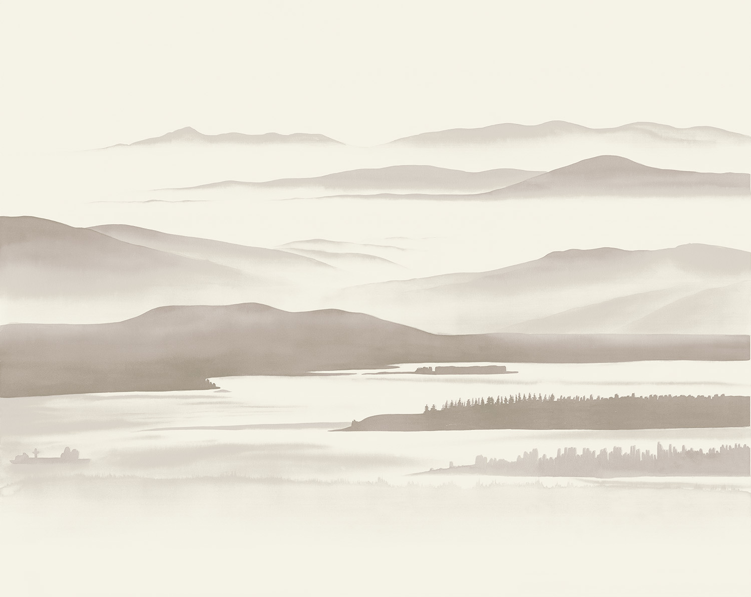 The Landscapes wallcoverings collection features picturesque natural scenery, creating a sense of harmony and tranquility in the interior. This collection showcases various types of nature — mountains, forests, fields, and water bodies — adding depth and dimension to the space.